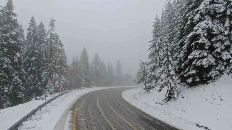 Bölgede etkili olan kar yağışı yerini karla karışık sağanak yağmura bıraktı. Beyaz örtü ile kaplanan Ilgaz Dağı havadan görüntülendi.