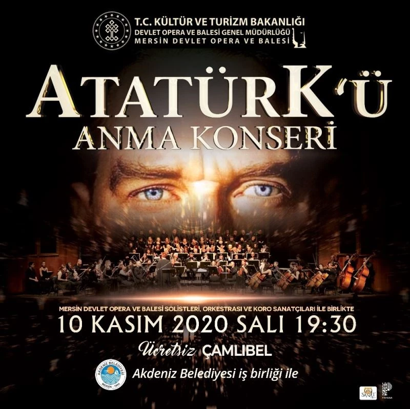 MDOB’tan yapılan açıklamaya göre, Akdeniz Belediyesi iş birliği ile 10 Kasım Salı günü saat 19.30’da, Çamlıbel’de ücretsiz olarak ’Atatürk’ü Anma Konseri’ düzenleniyor. Atatürk’ün sevdiği eserlerin seslendirileceği konserin orkestra şefliğini Murat Cem Orhan üstleniyor. Mersin Devlet Opera ve Balesi Orkestrası ve kadın korosuna, solistler Selva Erdener (soprano), Ezgi Karakaya (mezzo soprano), Bülent Bezdüz (tenor) ve kanun sanatçısı Hakan Güngör eşlik ediyor.