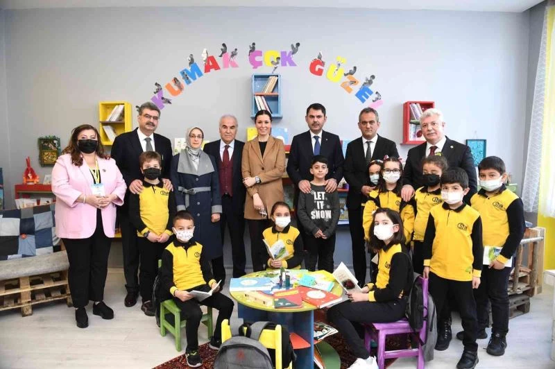 Konuşmaların ardından Milli Eğitim Bakanı Özer ve Çevre, Şehircilik ve İklim Değişikliği Bakanı Kurum, okuldaki çalışmaları inceledi; sınıfları, geri dönüşüm ünitelerini inceleyerek öğrenci ve öğretmenlerle sohbet etti.