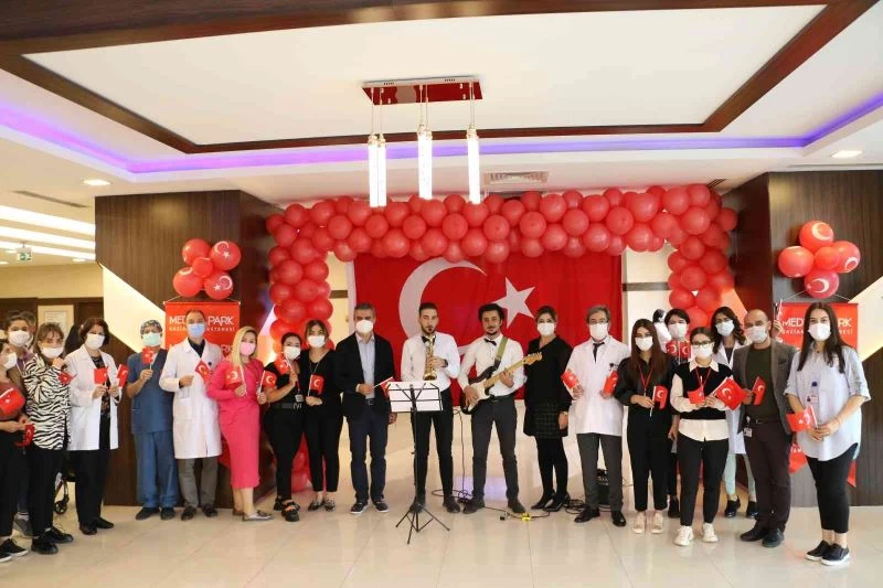 Hastanenin lobi fuaye alanında hastane yönetimi, çalışanlar ve hastalarla birlikte coşkuyla kutlanan 29 Ekim Cumhuriyet Bayramı etkinliğine hastalar ve çalışanlar yoğun ilgi gösterdi. Jazz etkinliğinde çalışanlar, şarkılarla ve marşlarla Cumhuriyet Bayramı’nı kutladılar. Cumhuriyet Bayramı nedeniyle tüm hastalara bayrak ve ay yıldızlı balon dağıtımı gerçekleştirildi. Medical Park Gaziantep Hastanesi Genel Koordinatörü Hayrullah Kubba 29 Ekim Cumhuriyet Bayramı ile ilgili yaptığı açıklamada, “Cumhuriyetimizin ilanının 98’inci yılında başta Büyük Önderimiz Gazi Mustafa Kemal Atatürk’ü, aziz şehitlerimizi ve gazilerimizi saygı ve rahmetle anıyor, Cumhuriyet Bayramınızı en içten dileklerimizle kutluyoruz” diye konuştu.