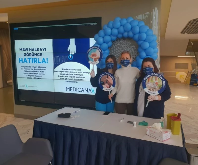 Medicana Bursa Hastanesi hemşireleri tarafından 14 Kasım Dünya Diyabet Günü nedeniyle hastane ana girişinde hastalara ve hastane çalışanlarına yönelik ücretsiz kan şekeri ölçümü yapıldı. "Mavi Halkayı Görünce Hatırla " sloganı ile hazırlanan görseller ile günün öneminin belirtildiği ölçüm ilgi gördü. Çıkan sonuçlara göre diyabet takibinin ne sıklıkla yapılması gerektiği, kan şekeri değerlerinin yüksek veya düşük çıkması durumunda neler yapılabileceği hakkında bilgi verildi.