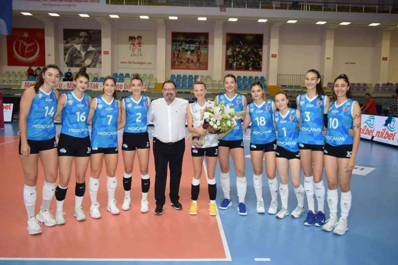 Voleybol Sultanlar Ligi’nde mücadele eden Nilüfer Belediyespor’a sağlık sponsoru Medicana Bursa Hastanesi başarı temennisinde bulundu. Sezonun ilk maçı öncesi sahaya inen Medicana Bursa Hastanesi Genel Müdürü Dr. Öğretim Üyesi Remzi Karşı, takım kaptanı Buse Kayacan’a çiçek takdim ederek tüm takıma sezonda başarılar diledi.