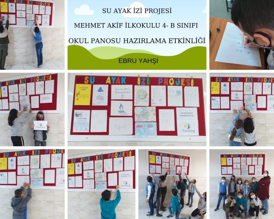 projeler geliştirmek amacıyla 2005 yılında başlatılan ve hızla yaygınlaşan E-Twinning projesi kapsamında, Mehmet Akif İlkokulu Su Ayak izi Projesi, Azerbaycan ve Türkiye genelinden toplam 8 okul olarak su ayak izi projesinde bir araya geldi. Mehmet Akif İlkokulu öğrencileri ve Sınıf Öğretmeni Ebru Yahşi koordinatörlüğünde e-Twinning projesinde, Azerbaycan'dan İ.Həsənov adına İsmayıllı şəhər 1 saylı tam orta məktəb, Türkiye'den ise Balıkesir Ayşebacı Şehit İsa Yavaş İlkokulu, Balıkesir Ayşebacı Şehit İsa Yavaş Ortaokulu, Bursa Gündoğdu İlkokulu, İstanbul Başakşehir Hacı Ali Gül İlkokulu, Çorum İnkılap Ortaokulu ve Balıkesir İmam Hatip Orta okulu ve Bursa Şehit Piyade Er Rahim Keskin ortaokulu olmak üzere toplam 9 okul su ayak izine dikkat çekmek için bir araya geldi. Su kaynaklarının ve kullanılabilir temiz suyun giderek azaldığı kuraklığın kapımızda olduğu günümüzde farkındalık yaratmak isteyen öğrenciler, proje ile su kullanımı farkındalığının yüksek olmasını sağlamayı amaçladı.