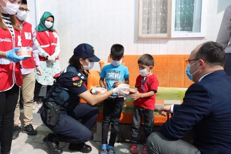 Mehmetçik konteyner kentte kalan ailelere aşure dağıttı