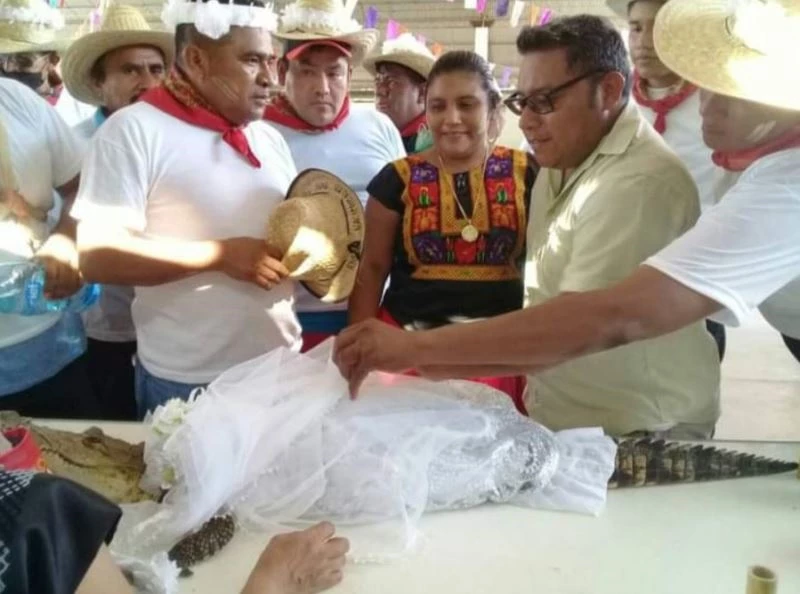 Meksika’nın Oaxaca eyaletinde yer alan San Pedro Huamelula kasabasının Belediye Başkanı Victor Hugo Sosa Garcia bir timsahla evlendi.