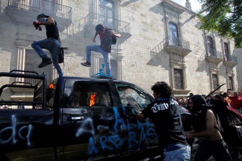 ABD’de siyahi George Floyd’un polis tarafından nefessiz bırakılarak öldürülmesinin ardından dünya genelinde polis şiddetine karşı protestolar düzenleniyor. Meksika’nın Jalisco eyaletinin başkenti Guadalajara’da yüzlerce kişi, maske takmadığı gerekçesiyle gözaltına alınırken dövülen ve daha sonra hayatını kaybeden 30 yaşındaki Giovanni Lopez için sokağa indi. Kentteki Eyalet Meclisinin önünde toplanan yüzlerce protestocu, Lopez için adalet talebiyle yürüyüş düzenledi. Barışçıl başlayan protestolar sırasında bir grup, Eyalet Meclisi binasına girmeye çalışırken polis müdahalede bulundu. Protestocularla polis aracında çıkan çatışmada polis araçları ateşe verildi. Eyalet Meclisi binasına giren protestocular, duvarları spreyle boyadı.