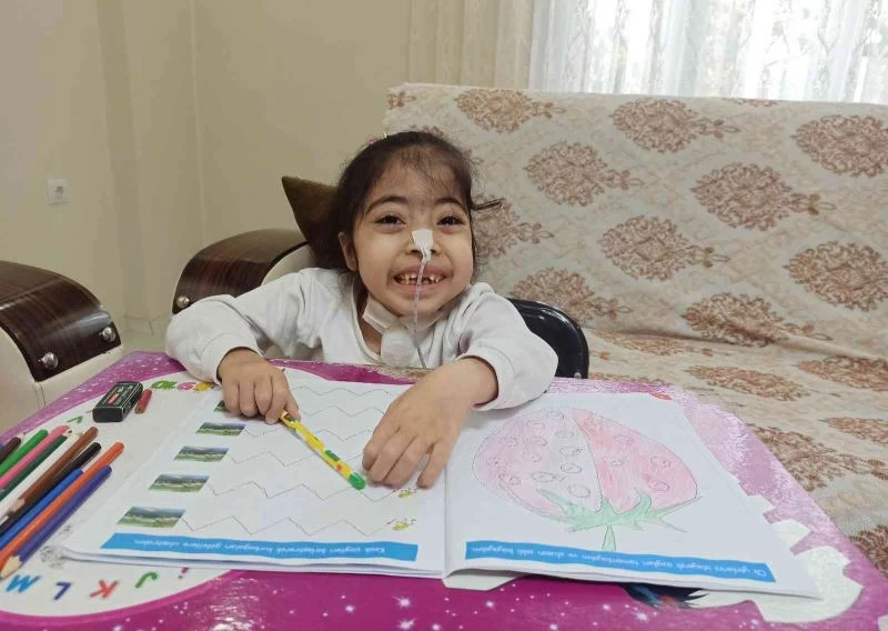 Kahramanmaraş’ta omurilik açıklığı ile dünyaya gelen ve rahatsızlığı nedeniyle okula gidemeyen 7 yaşındaki Melek Rana Hasırcı, evde eğitim hizmeti almanın mutluluğunu yaşıyor.