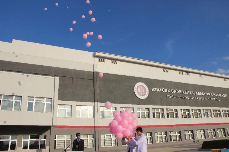 Atatürk Üniversitesi Araştırma Hastanesi Başhekimliği önünde düzenlenen farkındalık etkinliğine Atatürk Üniversitesi Rektör Yardımcısı Prof.Dr. Selahattin Çelebi, Atatürk Üniversitesi Araştırma Hastanesi Başhekimi Prof.Dr. Fuat Gündoğdu ve hastanede görevli doktor ve personeller katıldı. Doktorlar, 1-31 Ekim Meme Kanseri Farkındalık Ayı ve 15 Ekim Dünya Meme Sağlığı Günü dolayısıyla gökyüzüne pembe balonlar bıraktı.