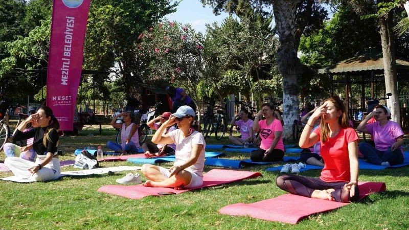 Mersin’in merkez ilçe Mezitli Belediyesi, 1-31 Ekim Meme Kanseri Farkındalık Ayı kapsamında etkinliklere devam ediyor. Bu kapsamda, bisiklet aktivisti Ebru Petek Budur ve Mersin Bisikletli Kadınlar tarafından Soli Pompeiopolis Parkında gerçekleştirilen ve meme kanserine farkındalığı artırmayı amaçlayan yoga etkinliğine Mezitli Belediyesi de destek verdi.