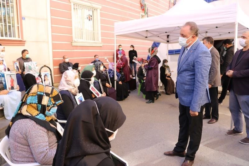 Memur-Sen Diyarbakır İl Başkanı Nurhak Ensarioğlu ve beraberindekiler, çocukları dağa kaçırıldığı iddiası ile HDP Diyarbakır il binası önünde 443 gündür oturma eylemi gerçekleştiren aileleri ziyaret etti.