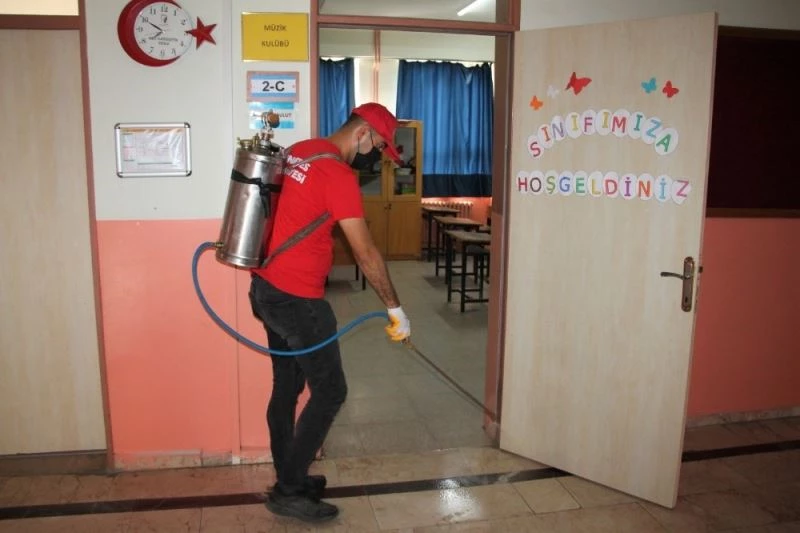 İzmir’in Menderes ilçesinde, belediye ekipleri tarafından ilçe genelindeki okullar dezenfekte edildi.