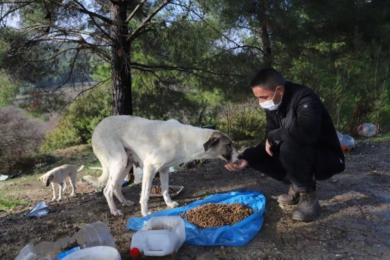 İzmir’de Menderes Belediyesi ekipleri, sokağa çıkma kısıtlaması nedeniyle sokak hayvanlarının aç kalmaması için kentte mama dağıtımı yaptı.