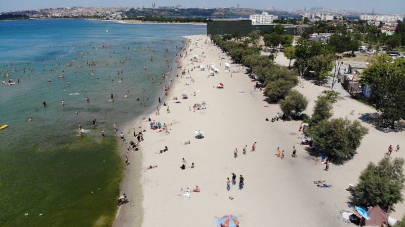Yeni tip korona virüs sürecinde sık sık sosyal mesafe ve maske uyarıları yapılmaya devam ediliyor. Salgındaki günlük vaka sayıları bin kişinin üzerinde çıkmaya devam ederken, sıcak hava nedeniyle bunalan vatandaşlar izin günlerinde Küçükçekmece’de bulunan Menekşe Halk Plajı’na akın etti. Plajda yoğun kalabalık oluştu. Vatandaşların oluşturduğu yoğun kalabalık drone ile havadan da görüntülendi.