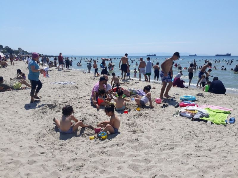 Kurban Bayramı’nın 3. gününde İstanbul’da olan vatandaşlar sıcak havayı fırsat bilip Küçükçekmece’deki Menekşe plajına akın etti. Aileleri ve arkadaşlarıyla denize gelen çok sayıda vatandaş sıcak havada denize girip serinledi. Bazı vatandaşlar kumda güneşlenirken kimileri de ağaç gölgesinde piknik yaptı, serinledi. Vatandaşların büyük çoğunluğunun maske takmayıp sosyal mesafe kuralını hiçe saydığı plajda koronaya adeta davetiye çıkarıldı.