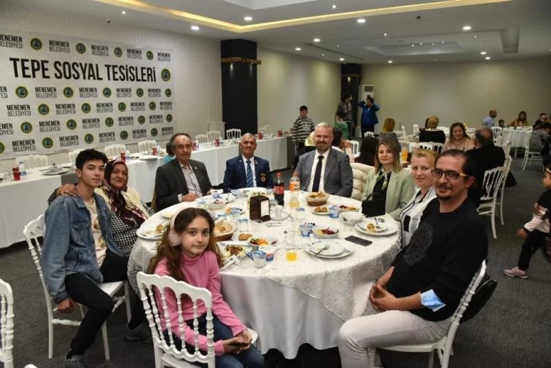 Menemen Belediyesi ev sahipliğinde, Tepe Sosyal Tesislerinde şehit yakınları ve gaziler için bir iftar yemeği düzenlendi. Programa ilçe protokolü de katıldı. İftar öncesi masaları tek tek dolaşan Menemen Belediye Başkan Vekili Aydın Pehlivan ve eşi Filiz Pehlivan, şehit yakınları ve gazilerle sohbet edip, sorun ve taleplerini dinledi. Okunan ezanın ardından oruçlar açıldı, İlçe Müftüsü Mehmet Seven tarafından yemek duası yapıldı.
