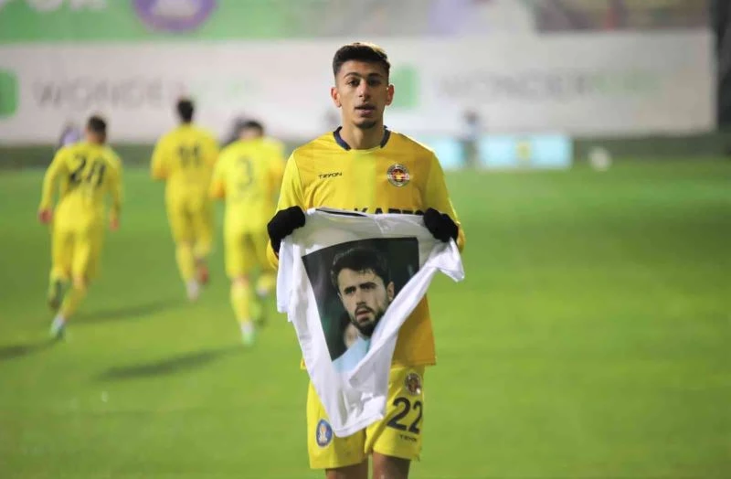 Menemensporlu futbolcular, Bandırmaspor karşısında attıkları golün ardından trafik kazasında hayatını kaybeden Konyasporlu futbolcu Ahmet Çalık’ı, fotoğrafının basılı olduğu tişört ile andı.