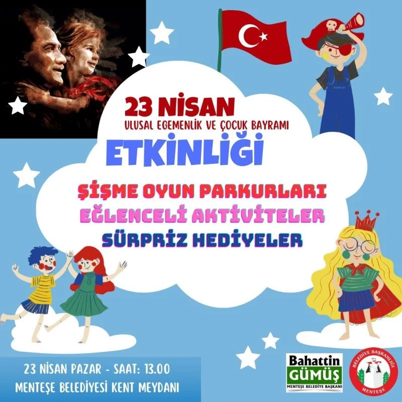 Menteşe Belediyesi 23 Nisan Ulusal Egemenlik ve Çocuk Bayramını, kent meydanında çocuklara yönelik hazırladığı bir dizi etkinlik ile kutlayacak.