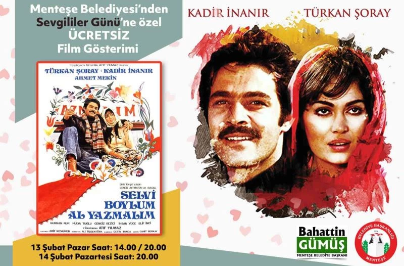 Menteşe Belediyesi 14 Şubat Sevgililer Günü’ne özel Türk sinemasının kült yapımlarından “Selvi Boylum Al Yazmalım” filmini kültür-sanat etkinlikleri kapsamında halkımızla buluşturuyor.
