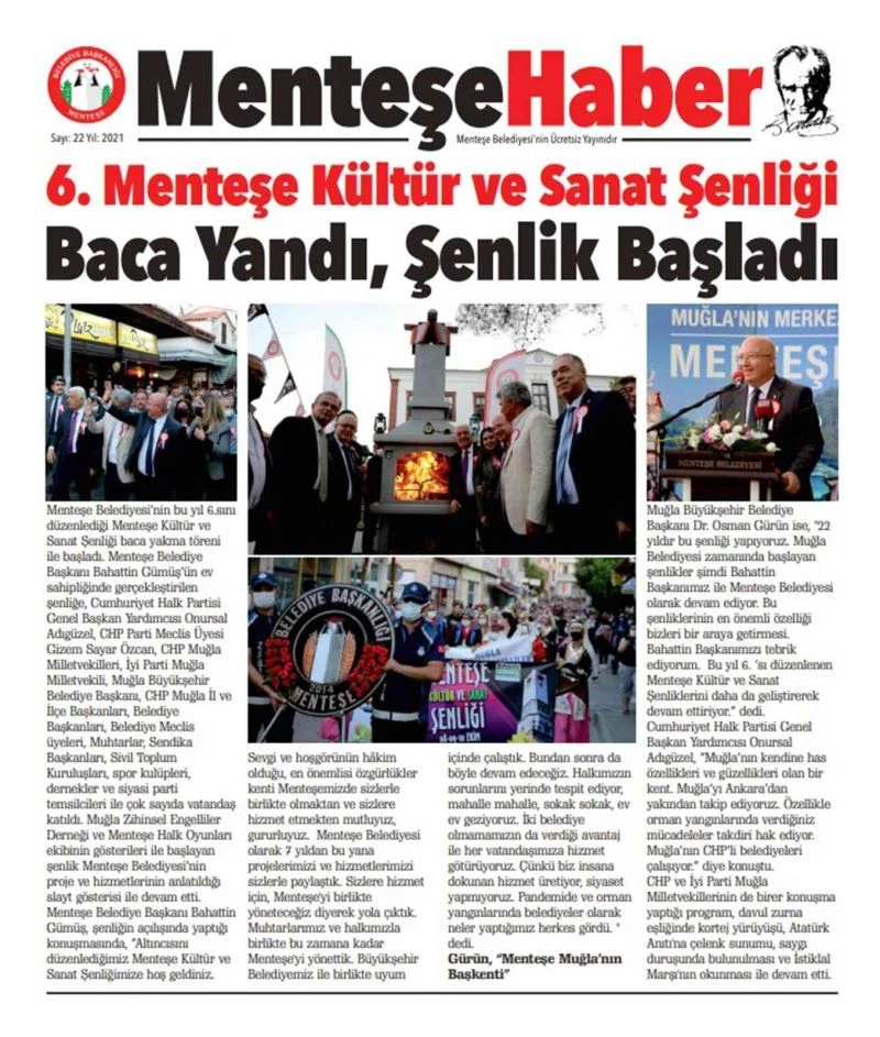 Menteşe Belediye Başkanı Bahattin Gümüş’ün kent ve ülke gündemini değerlendirdiği köşe yazısı, 6’ncı Menteşe Kültür ve Sanat Şenlikleri, Menteşe Belediyesi’nin tamamlanan ve devam eden projeleri ile hizmetlerinin yer aldığı ‘Menteşe Haber’ bültenine linkten https://www.mentese.bel.tr/edergi/bulten_22/ ulaşabilirsiniz.