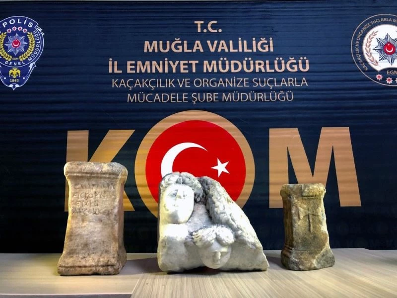 Muğla’nın Menteşe ilçesinde Emniyet Müdürlüğü Kaçakçılık ve Organize Suçlarla Mücadele Şube Müdürlüğü ekipleri tarafından düzenlenen tarihi eser operasyonunda Roma dönemine ait olduğu değerlendirilen sütun ve obje ele geçirildi.