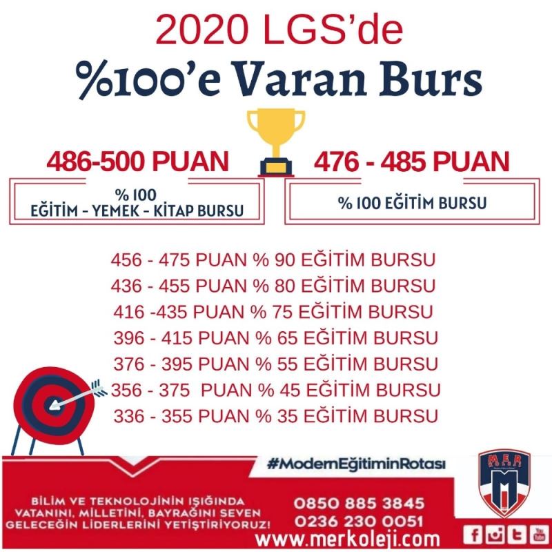 LGS sonuçlarının açıklamasının ardından MER Koleji, iyi bir lisede eğitimlerine devam etmek isteyen öğrencileri başarılarına göre ödüllendirmek için bursluluk oranlarını açıkladı. Yüzde 35 eğitim bursundan başlayan bursluluk oranlarında LGS’de 486 ve üzerine puan alan öğrencilere yüzde yüz eğitim bursunun yanında, yemek ve kitap bursu da verilecek. Bursluluk oranlarında okulun kendi öğrencilerine yüzde 10 fazlasının uygulanacağı, 470 ve üzerinde puan alan öğrencilere yüzde yüz eğitim bursunun yanında kitap ve yemek bursu da verileceği bildirildi.