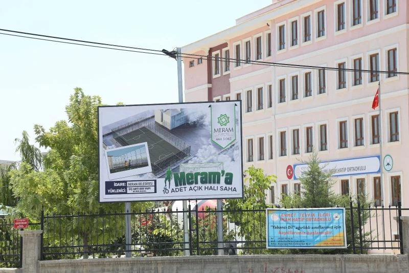 Meram Belediyesi tarafından halı saha kazandırılan okulların isimleri şunlar: “Necip Fazıl Kısakürek İmam Hatip Ortaokulu, Çelebi Hüsamettin Anadolu İmam Hatip Lisesi, Hadimi Anadolu Lisesi, Mehmet Kadir Özgüzar Ortaokulu, Şifa Hatun Mesleki ve Teknik Anadolu Lisesi, Mehmet Akif İnan Anadolu Lisesi, Şehit Fethi Sekin Mesleki ve Teknik Anadolu Lisesi, Çarıklar Ortaokulu ve İlkokulu, Turan Bilge Ortaokulu, Ahmet Tevfik İleri İmam Hatip Ortaokulu.”