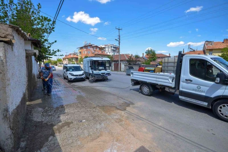 Konya’nın Meram İlçe Belediyesi, bereketli geçen kış mevsiminden sonra havaların ısınmasıyla birlikte ilçe genelindeki tüm cadde ve sokaklarda bahar temizliğine başladı.
