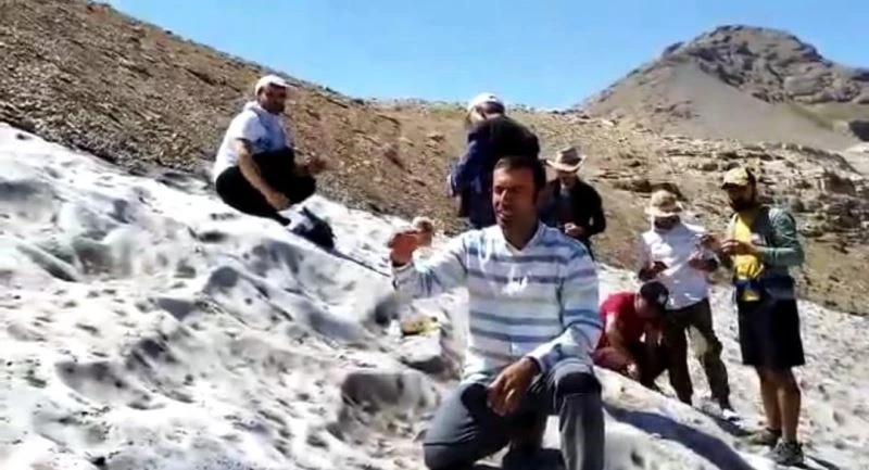 Batman’ın Sason ilçesinde 3000 rakımlı Mereto Dağı’na tırmanan vatandaşlar, ağustos ayında karın üzerinde vakit geçirerek, pekmezden kar helvası yemenin keyfini yaşadı.