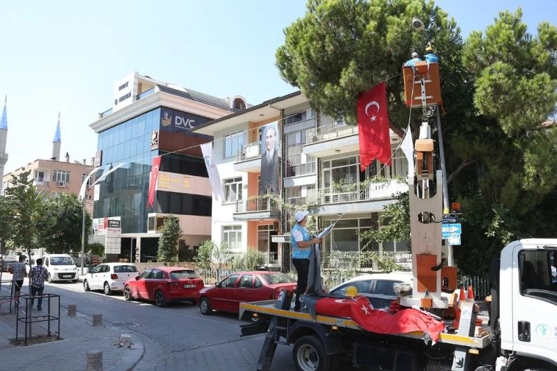 Merkezefendi Belediyesi, 30 Ağustos Zafer Bayramı kutlamaları için hazırlıklarını sürdürüyor. Bu kapsamda, ilçe sınırları içerisinde bulunan sokaklar, Türk bayrakları ve Atatürk posterleriyle süslenmeye başladı.