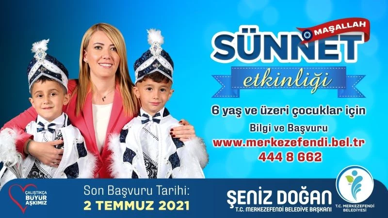 Ekonomik zorluk çeken Merkezefendililerin yanında olmayı hedeflediklerini belirten Merkezefendi Belediye Başkanı Şeniz Doğan, “Merkezefendi Belediyesi olarak sosyal belediyecilik anlayışıyla gerçekleştirmiş olduğumuz birçok etkinliğe, hizmete bir yenisini daha ekledik. İlçemizde ikamet eden 6 yaş ve üzeri erkek çocuklarımız için ücretsiz sünnet hizmeti vereceğiz. Sünnet şölenimizin ilkini gerçekleştireceğiz. Bu şöleni önümüzdeki yıllarda da sürdürerek ilçemizde geleneksel hale getireceğiz. Özellikle ekonomik zorluk çeken ailelerimizin yanlarında olmak, onlara destek olmak amacıyla bu etkinliği gerçekleştireceğiz. Sünnet işlemleri pandemi tedbirlerine uygun olacak şekilde, uzman hekimler tarafından yapılacak. Çocuklarını sünnet ettirmek isteyen hemşehrilerimiz belediyemize müracaat edebilirler” diye konuştu.