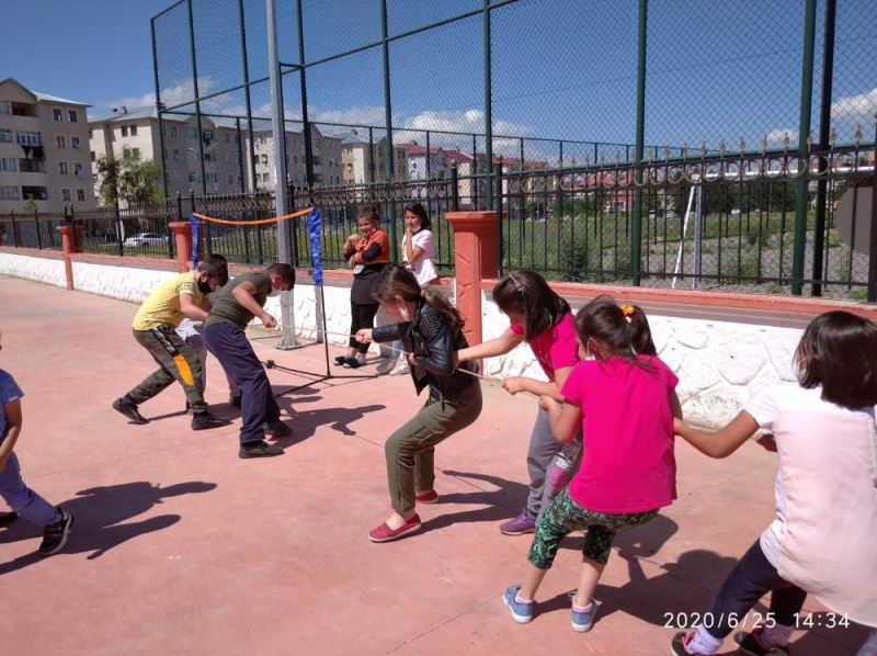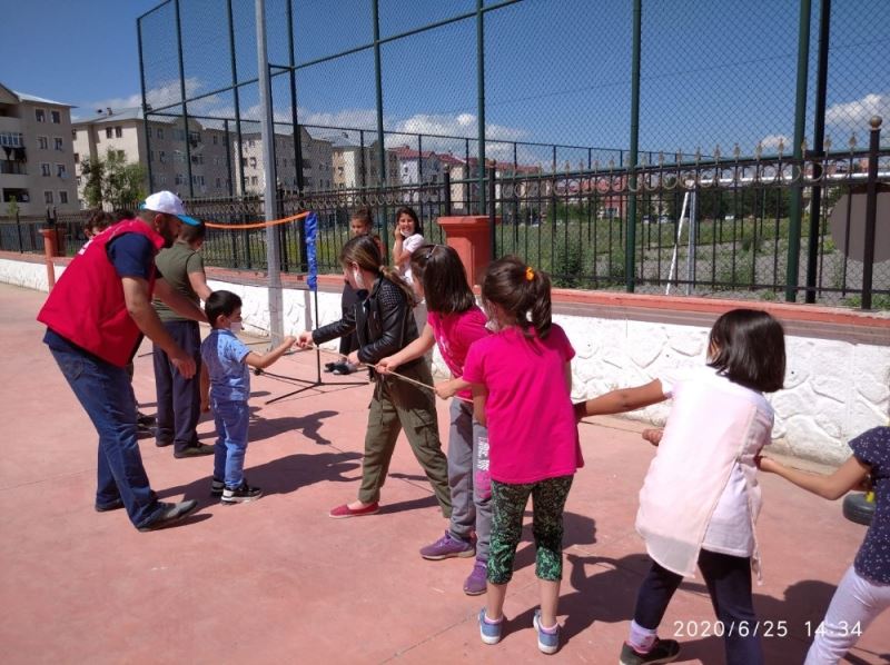 Tüm dünyayı etkisi altına alan Korona virüs (Covid-19) sürecinde evlerinin balkanlarında halka spor yaptıran ve onların hareket etmesini sağlayan Erzurum Gençlik ve Spor İl Müdürlüğü, Normalleşme süreci ile de ‘Spor Her Yerde’ projesini hayatiyete geçirerek, halka spor gösterileri yaparken, gençleri spora teşvik etmeyi hedeflemişti. Pandemi sürecinde binlerce siperli maske üretimi ile sağlık çalışanlarına ve emniyet mensupları ile esnafa katkı sunan Erzurum Gençlik ve Spor İl Müdürlüğü Gençlik Merkezleri, bugünlerde de faaliyetlerine tam gaz devam ediyor. Yakutiye Gençlik Merkezi Şehirler Kültürler Yaşlılar Projesi ile 65 yaş ve üzeri vatandaşlar ile şehit ailelerine yaptığı etkinliklerle alkış almıştı. Şimdi de Erzurum Gençlik ve Spor İl Müdürlüğüne bağlı Aziziye Gençlik Merkezi normalleşme süreciyle birlikte faaliyetlerine start verdi. Gençlik ve Spor Bakanlığı’nın ‘Merkezim Her Yerde’ Projesi kapsamında faaliyetlerini bu defa Gençlik Merkezi’nde yapan Gençlik Liderleri çocuklarla eşsiz bir gün yaşattılar. Etkinliğe katılım sağlayan çocukların ateşi ölçülüp dezenfekte jeli dökülerek önlem alan gençlik liderleri faaliyetlerde de fiziksel mesafeye dikkat ederek çocukların güzel bir gün yaşamasını sağladılar. Maske ve sosyal mesafe vurgusunun yapıldığı etkinlikle çocuklar pandemi sürecinin ardından keyifli anlar yaşadı.