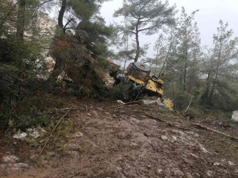 Muğla’nın Kavaklıdere ilçesindeki bir mermer ocağında moloz dökümü esnasında gere geri giden kamyon uçuruma yuvarlanması sonucu bir kişi yaralandı.