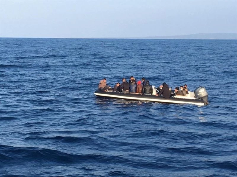 Bölgeye yönlendirilen ekipler, lastik botta15 düzensiz göçmen ile göçmen kaçakçısı oldukları belirlenen 2 şüpheliyi yakaladı.