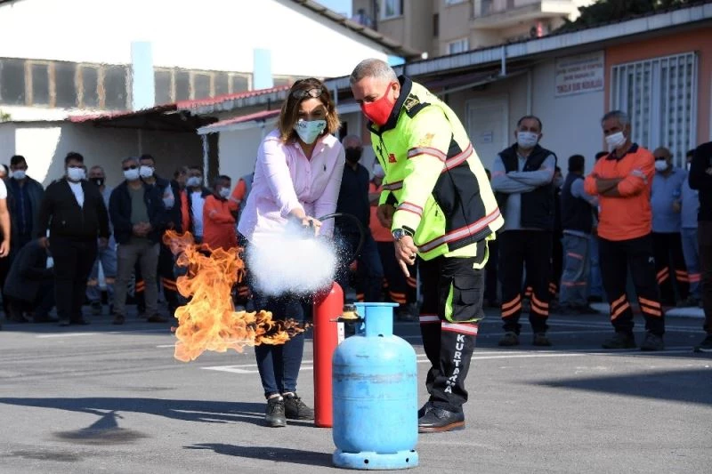 Mersin Büyükşehir Belediyesi, İzmir’de yaşanan acı kayıpların ardından önlemlerin hayati değerine dikkat çekmek amacıyla personeline yönelik bilgilendirme çalışmalarını hızlandırdı. İtfaiye Dairesi Başkanlığı tarafından Çevre Koruma ve Kontrol Dairesi Başkanlığı personeline Makine İkmal Sahasında yangın tatbikatı ve eğitimi verildi.
