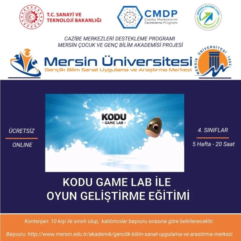 Ülke ve dünya genelinde yaşanan pandemi nedeniyle yüz yüze eğitimler başlatılamasa da ocak ayında uzaktan eğitim aracılığıyla Mersin Üniversitesi Gençlik Bilim Sanat Uygulama ve Araştırma Merkezi faaliyetlerine ilkokul 4. sınıf öğrencilerine yönelik kodu game lab ile oyun geliştirme eğitimi, ortaokul 5. ve 6. sınıf öğrencilerine yönelik tinkercad ile 3 boyutlu tasarım eğitimi ve lise 9. ve 10. sınıf öğrencilerine yönelik app inventor ile mobil uygulama geliştirme eğitimleriyle başlayacak. Ücretsiz olarak düzenlenecek olan eğitimler, 5 hafta boyunca toplam 20 saat olarak gerçekleştirilecek.