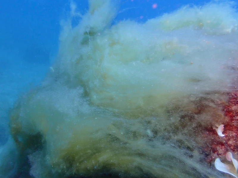 MERSİN - MUSTAFA ÜNAL UYSAL - Mersin Körfezi'ndeki ekosistemi incelemek için dalış yapan akademisyenler ve çevre gönüllüleri, deniz dibinde oluşan müsilajı su altı kameralarıyla kaydetti.