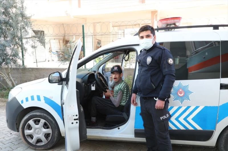 MERSİN (AA) - Mersin'de, Cumhurbaşkanlığı İletişim Merkezine (CİMER) başvuran ailesinin isteği üzerine polis ekiplerinin ziyarette bulunduğu engelli çocuk, polis otosuna binerek hayalini gerçekleştirdi.