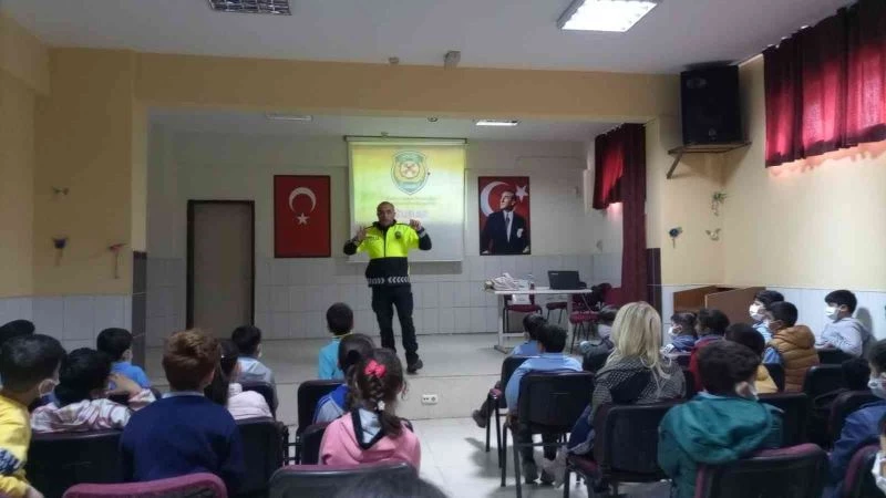 Mersin’de trafik polisleri, ilkokul öğrencilerine eğitim verdi.
