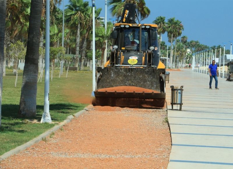 Mersin sahilindeki koşu yolu zemini iyileştiriliyor