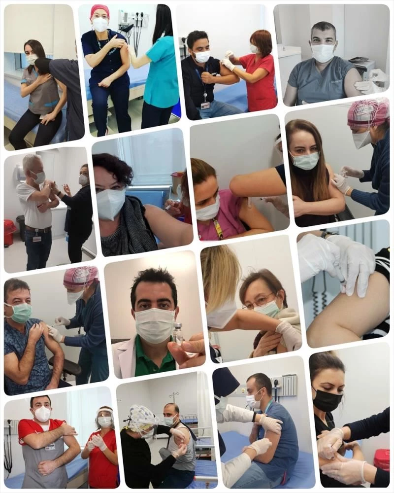 Mersin Şehir Eğitim ve Araştırma Hastanesinin Twitter hesabından, aşılanan sağlık çalışanlarının fotoğrafı paylaşıldı.