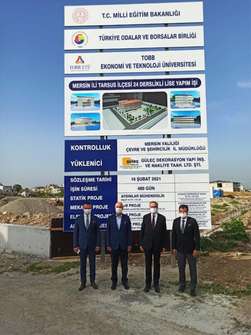 MERSİN (AA) - Mersin Valisi Ali İhsan Su, Türkiye Odalar ve Borsalar Birliğince (TOBB) Tarsus'a yaptırılan meslek lisesi inşaatında incelemelerde bulundu.