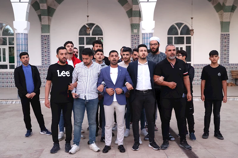 Namazın ardından cami avlusunda toplanan üyeler, basın açıklaması yaptı.