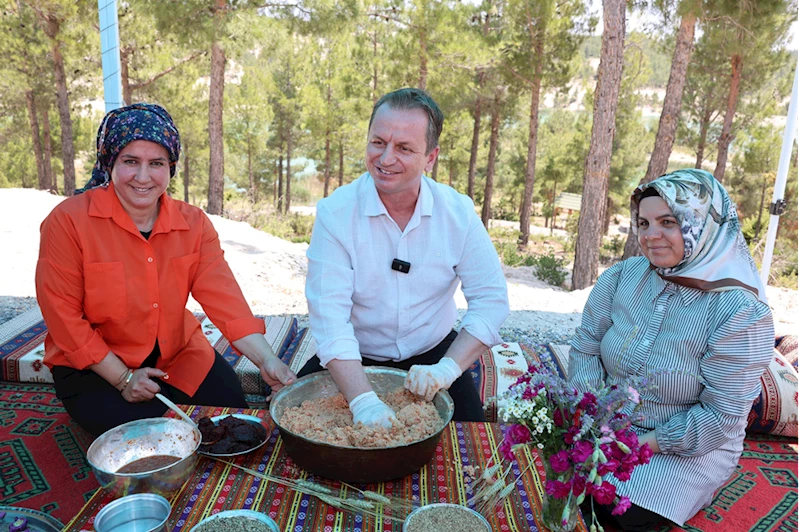 Belediye Başkanı Fatih Önge de çalışmaları yerinde inceledi, bulgurla yapılan yöresel yemek batırığı hazırladı.