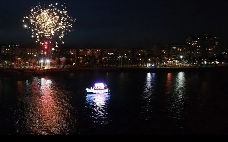’19 Mayıs kutlu olsun’ yazılı ışıklı bir tekne, Adnan Menderes Bulvarı’ndaki Beşiktaş Meydanı’ndan yol alarak kutlamaları denize taşıdı. Teknenin çıkışı sırasında gökyüzünü havai fişekler aydınlattı. Teknede İzmir ve 10. Yıl Marşları ile birlikte çeşitli şarkılar çalındı. Beşiktaş ve Fenerbahçe meydanlarının yanı sıra Viranşehir’de süren havai fişek gösterileri, Mersinlilere unutulmaz bir 19 Mayıs yaşattı.