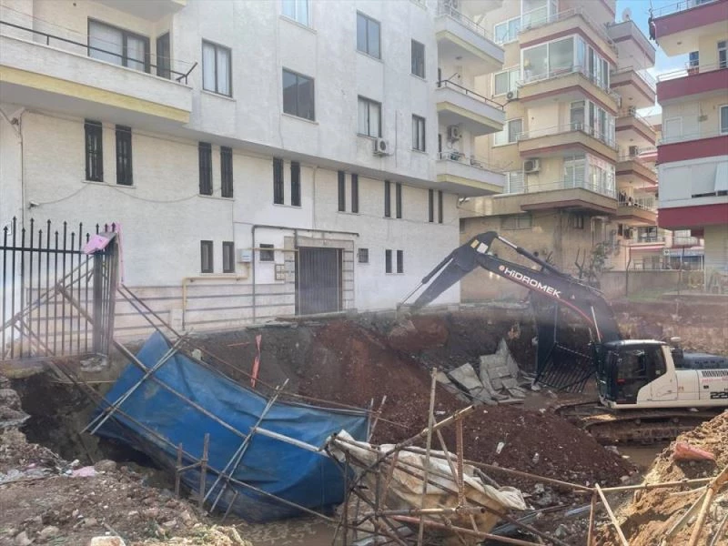 MERSİN - Mersin'in Mezitli ilçesinde, yanındaki arazide temel kazısı yapılan 4 katlı apartmanın önündeki giriş bölümünde çökme meydana geldi.
