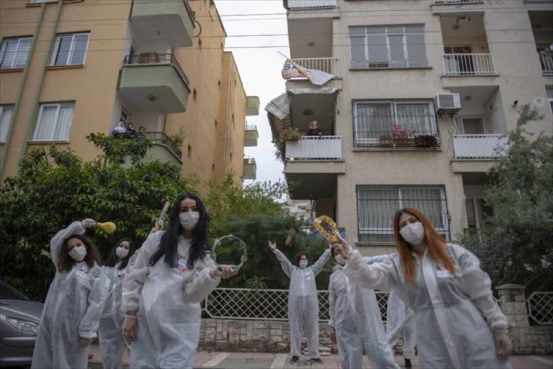 Eken'in komsulari da balkonlarina çikarak sarkilara eslik etti.