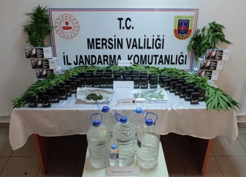 İl Jandarma Komutanlığından yapılan açıklamaya göre, Tarsus İlçe Jandarma Komutanlığı ekipleri, kaçak alkol imal ve ticareti ile uyuşturucu madde elde etmek amacıyla yasadışı ekim yapan şahıslara yönelik yaptığı çalışmalarda, Yeşiltepe Mahallesinde 1 şahsın iş yerinde sahte alkollü içki üreterek satış yaptığı, ayrıca evinin çatı katında kenevir bitkisi yetiştirdiği tespit edildi. Bunun üzerine belirlenen adreslere operasyon yapan ekipler, 27 litre sahte içki, 94 paket kaçak sigara, 150 gram kubar esrar, 50 kök kenevir bitkisi ele geçirdi.
