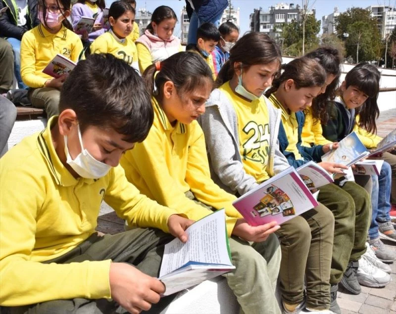 MERSİN - Mersin'de, Kütüphane Haftası dolayısıyla düzenlenen etkinlikte öğretmenler, öğrenciler ve aileler açık havada kitap okudu.