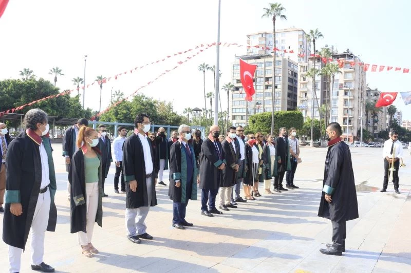 Mersin Barosunca Cumhuriyet Alanında düzenlenen törene, CHP Mersin Milletvekili Alpay Antmen, Baro Başkanı Gazi Özdemir ile avukatlar katıldı. Atatürk Anıtına çelenk sunumunun ardından konuşan Baro Başkan Gazi Özdemir, hukuk devletinin ve demokrasinin olmazsa olmazının, bağımsız ve tarafsız yargı olduğunu söyledi.