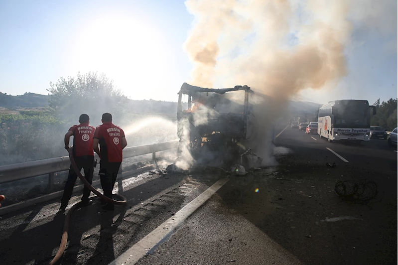 Mersin'de alev alan süt tankerinden çalılık alana sıçrayan yangın söndürüldü